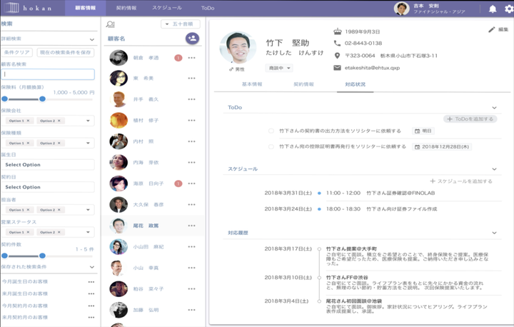 新規事業 hokan™️(保険代理店に特化したCRMのSaaS) 一部の要件定義 sketch, Figmaを使用したUI設計