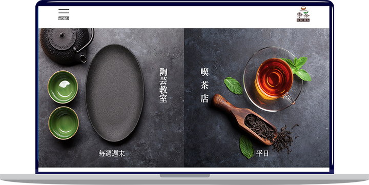初めて制作したサイト「季茶」。季茶は梅田にある喫茶店であり、平日は喫茶店で、週末は陶芸教室というコンセプトで制作しました。