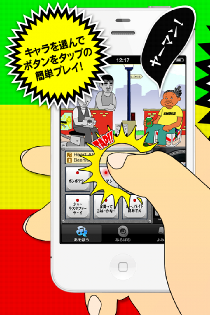 デザイン担当。 総合トップ無料 15位/トップゲーム無料 10位/ゲーム トリビア無料 1位 トップセールス3位/ゲーム ミュージック 1位 漫画家石原まこちん先生全面協力の元作成。 サンプラーをリズムに合わせてタップするだけの簡単操作。 ユルイ世界観でレゲエを自由に楽しめる。 楽曲を追加購入できるアプリ内課金システムモデル。 楽曲はミュージックエアポートさんと提携。 実はこのアプリはリワード広告を試しました。 お金の力で瞬間的なランクは買えるんだなと実感したアプリ。 ※販売終了。まこちん・ぽーたるに無料サンプル部分は流用中! ・MACお宝鑑定団 http://www.macotakara.jp/news829.html ・VP RECORDS JAPAN Blog紹介 http://dailynews.247reggae.com/?eid=1581149 ・アプリ野郎Z紹介 http://appsreviewers.blogspot.jp/2012/11/blog-post_5571.html ・ROCKERS channel http://www.rockers-channel.com/headline/japanese/woofin-jah3-iphone.php