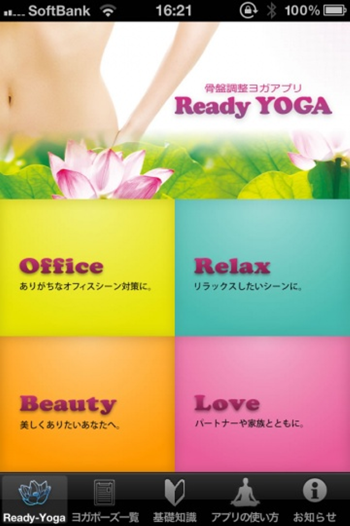 デザイン担当。 有料アプリ10位 トップセールス2位 全てのカテゴリーの有料App 154位。 有料の買い切りヨガアプリ。 39種類のポーズをシーンに合わせて組み合わせ、お手軽に骨盤調整ヨガを体験できるもの。 ヨガ講師の講師が監修。 AppBank掲載 http://www.appbank.net/2012/06/07/iphone-application/423724.php iPhone女史掲載 http://www.iphone-girl.jp/application-review/190470.html