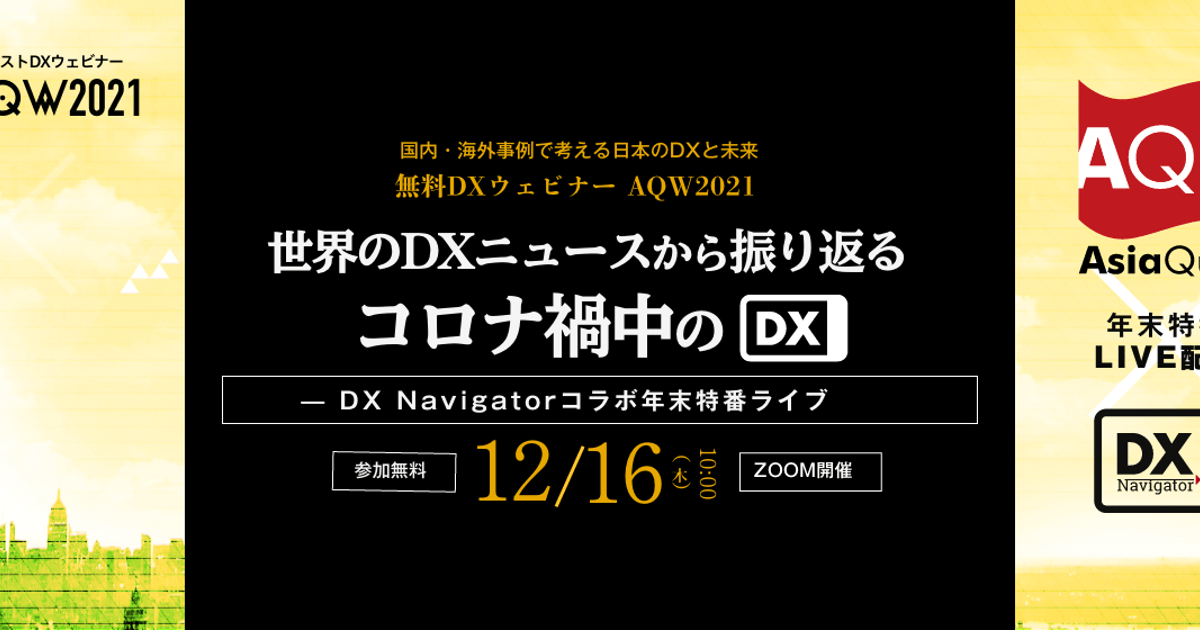 【参加費無料】ウェビナー『AQW2021 世界のDXニュースから振り返るコロナ禍中のDX — DX Navigatorコラボ年末特番ライブ』を12/16に開催します