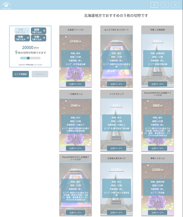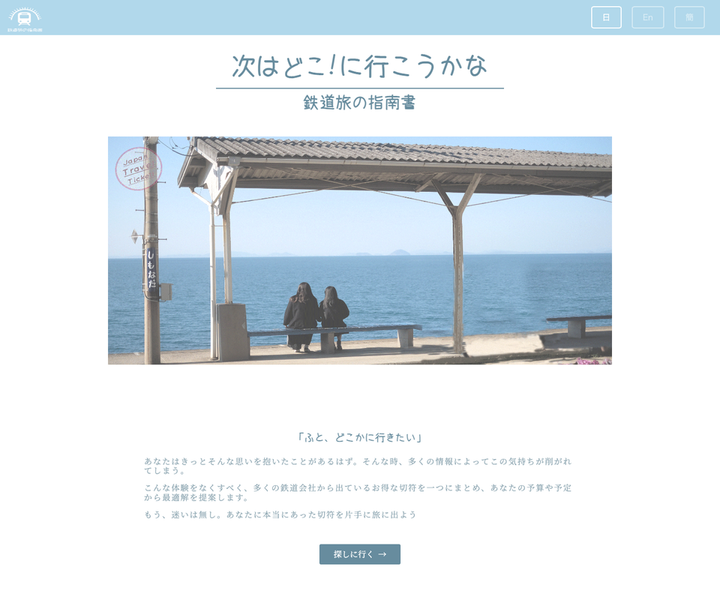 学生時代の日本一周の経験から切符の検索サイトの必要性を感じ、切符の検索サイトを複数言語で作成しました 開発はAdobe XDでプロトタイプを作り、以下の開発環境でコーティング及びプログラミングを行いました。 開発環境 ・Adobe XD ・vs code ・firebase 開発言語 ・HTML ・CSS ( SCSS ) ・ Java Script ( Vue.Js, jQuery )