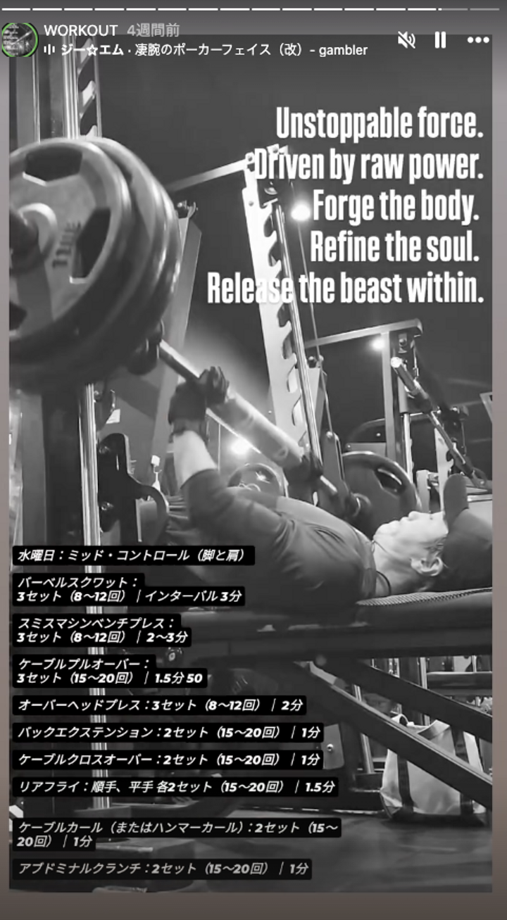 クリエイターとして心身の健康と高いパフォーマンスを徹底。日々の鍛錬で培った継続力と規律は、あらゆるプロジェクトを完遂させる強靭な基盤となっています。