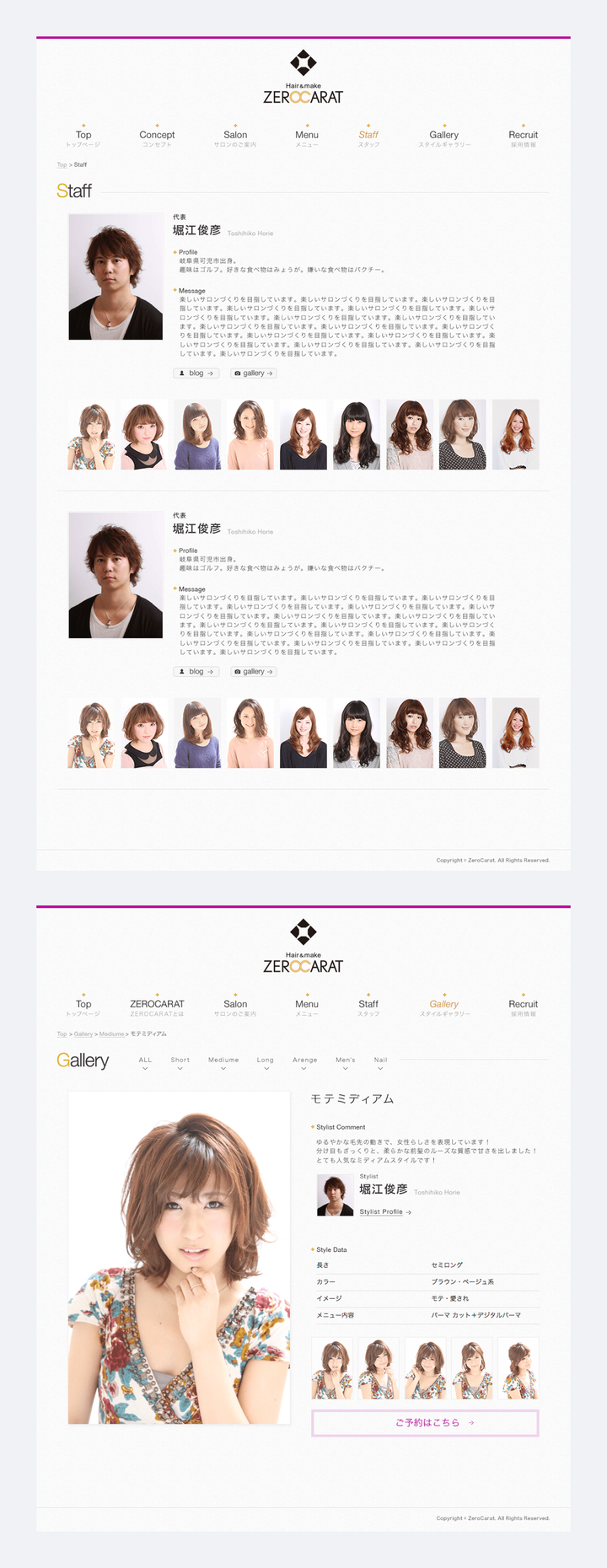 数々のTV、CM、雑誌、女優、俳優、モデル、タレント、アナウンサー、アスリート、声優の方々をご担当した、堀江俊彦が地元可児市にオープンしたヘアサロン。 ZEROCARAT(ゼロカラット)の名は、 ここ可児市からゼロに戻り初心の気持ちを持ち、 お客様に(美)はもちろん(来てよかった)と満足していただけるようなサロンづくりを目指してつけさせていただきました。 オリジナルカットは、お客様の髪の可能性を無限大にいかし、完成度の高いヘアデザインに仕上がります。 お客様ひとりひとりの髪質・くせ・骨格に合わせて毛束を切る事で、 デザイン性だけでなく、持続性・再現性・くせ毛にも強い、ヘアデザインをご提案させていただきます。