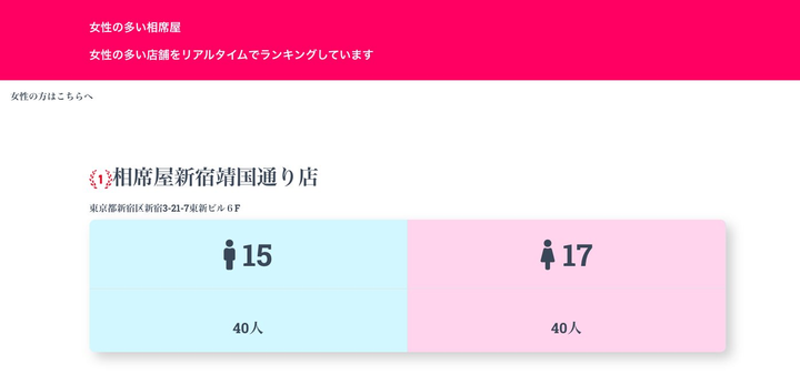 相席屋のリアルタイム男女比率を1ページにまとめました。Python