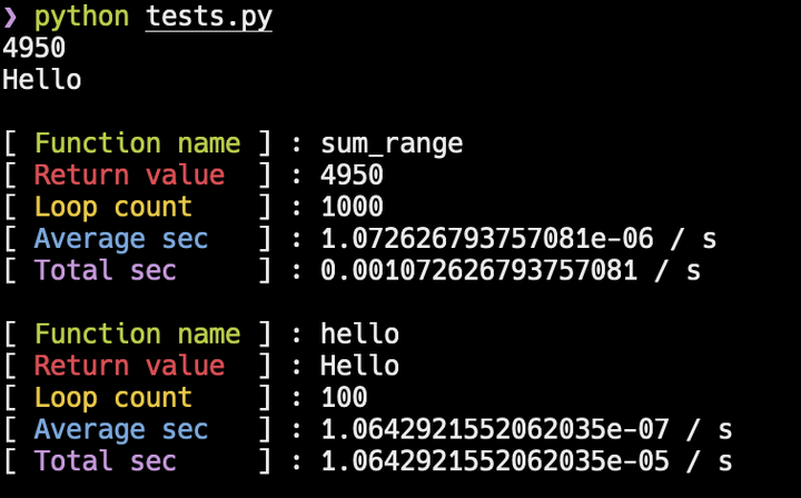 処理のベンチマーク計測用デコレータを提供するPythonライブラリ