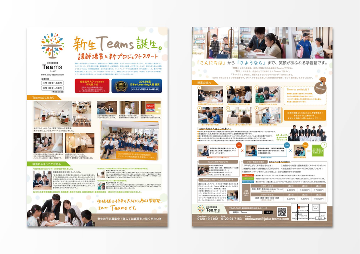 小・中学生向けの個別塾。B4表裏のフライヤーデザインを担当した。