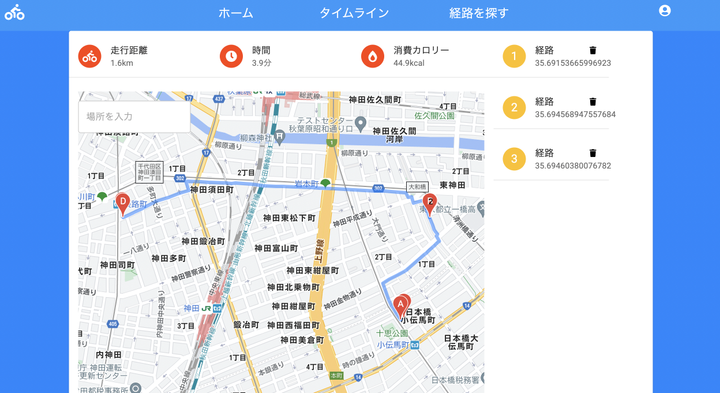 サイクリングルート共有アプリ Frontend: Next.js, TypeScript Backend: Go, Gin 開発環境: M1mac, Docker, S3, CloudFront
