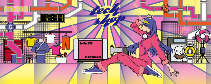 会員制DIYスペース「TechShop」での展示イラスト。 展示時は縦180cm×横470cm程度のサイズに印刷する必要があった為、Adobe Illustlatorにてベクターデータで作成。 ■使用ツール ・Illustlator