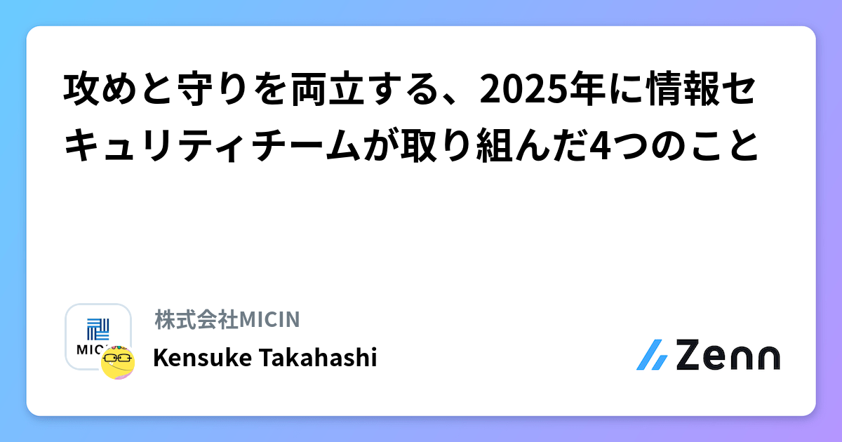 株式会社MICIN / コーポレート推進部 情報セキュリティチーム