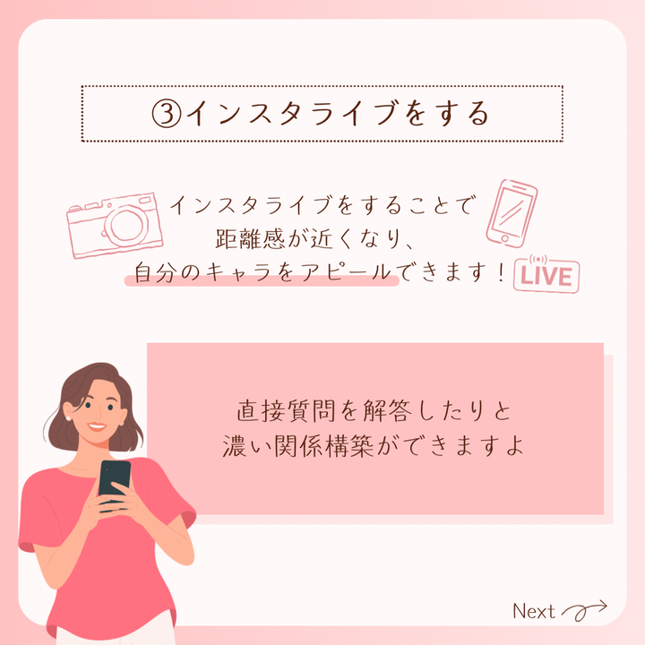 SNS投稿デザインを中心に、Instagramをはじめとしたコンテンツ制作を行っています。 投稿の構成設計からデザイン制作まで一貫して行い、発信内容が分かりやすく伝わるコンテンツ制作を心がけています。