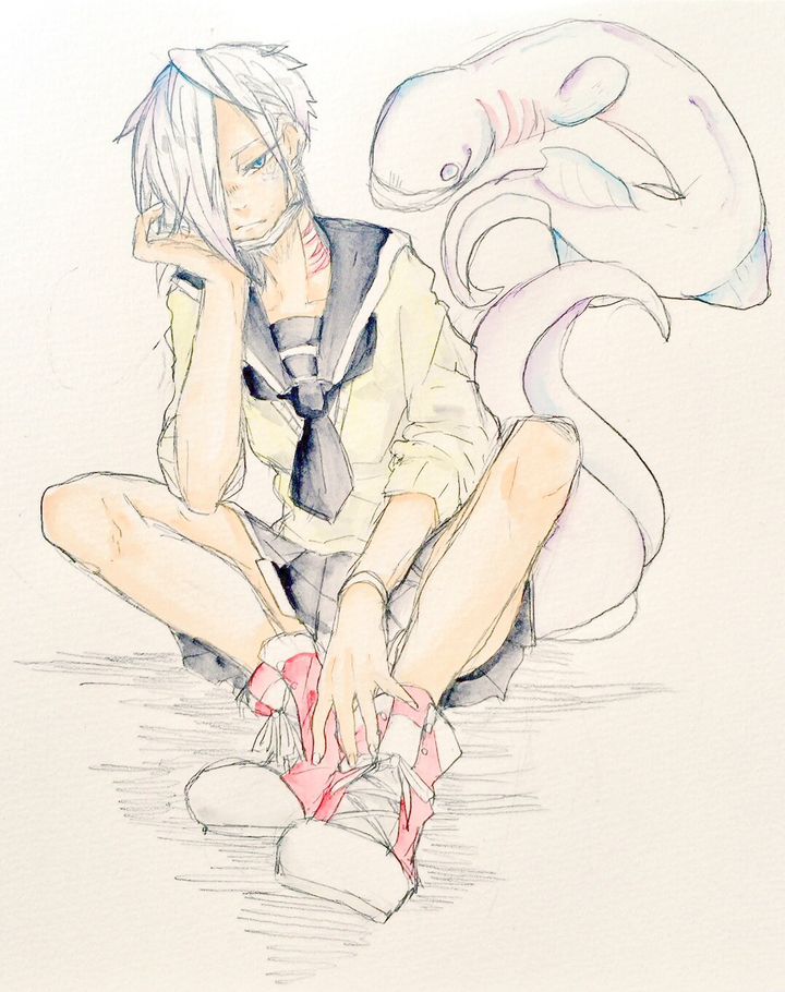 ラブカモチーフのオリジナルキャラクターの女の子。 シロ。 制作時間1時間 線画、鉛筆 着色、水彩色鉛筆