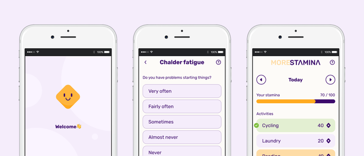 多発性硬化症患者向けエビデンスに基づく疲労管理ソリューション「MoreStamina」のアプリUIデザイン。 ----- An app UI design for MoreStamina, an evidence-based fatigue management solution for persons with Multiple Sclerosis.