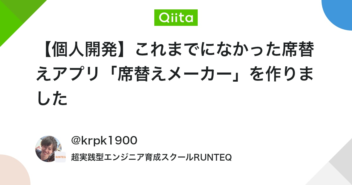 【Qiita記事】これまでになかった席替えアプリ「席替えメーカー」を作りました