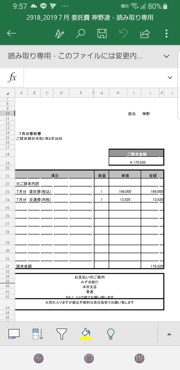 画像は7月の際の業務委託費の請求書です。個人事業で約18万 授業員への給与を差し引いても10万近くの利益を出すことに成功致しました。