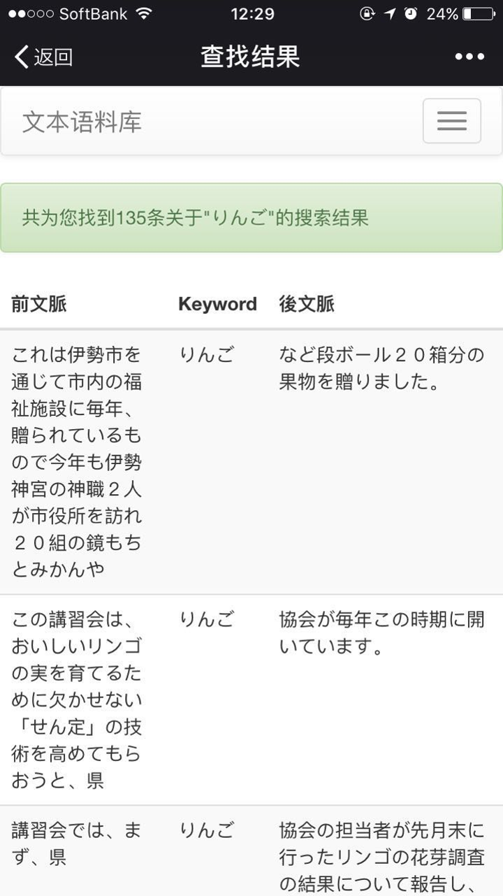 This application provides the services of the Japanese corpus in WeChat. Users can search for information in the corpus through WeChat.