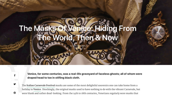 ベネチアの伝統的な仮面と、現代のコロナ渦におけるマスクのもつ社会的意味を対比しました。