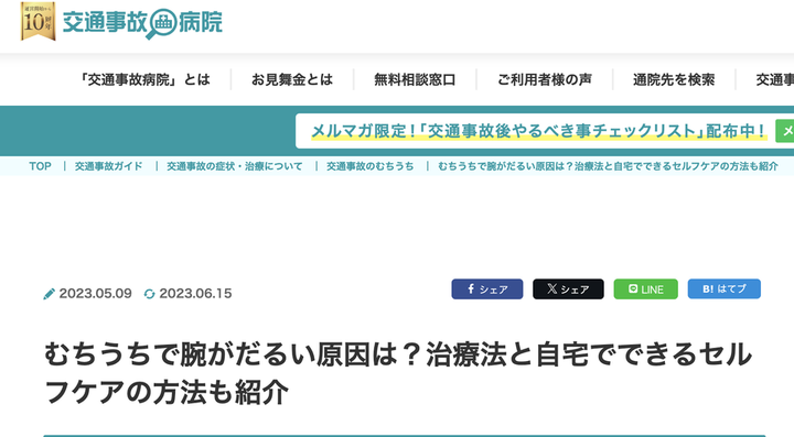 記事タイトル: むち打ち症と腕のだるさの関係について解説