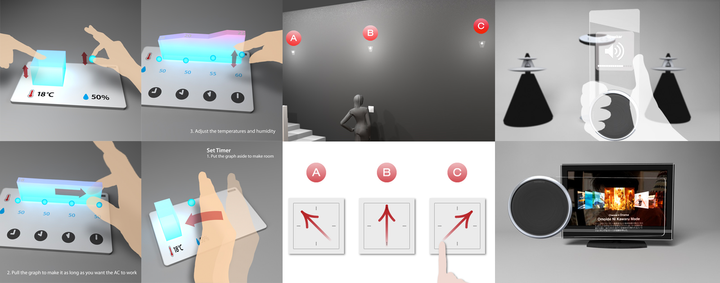 コンセプトデザイン 普段使っている機器のUIを改良し、使いやすさを向上したデザインを提案した個人のプロジェクト。タッチパネルだけでなく、3DプロジェクションやファーストパーソンUIなど、テクノロジーを問わず自由に発想している。