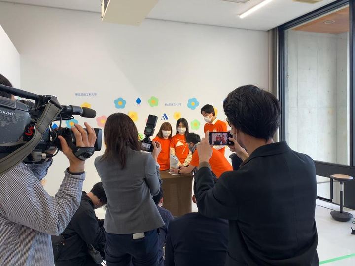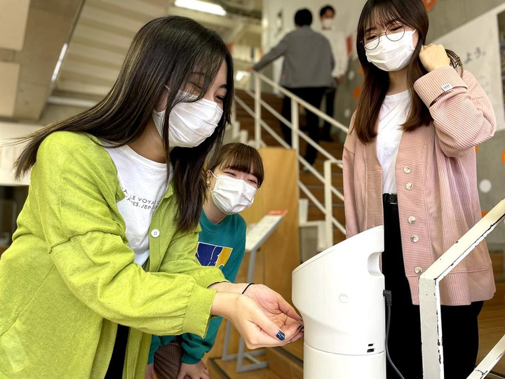 コロナ禍で大学全体に笑顔が減ってしまっていることが課題でした。 そこで除菌というマイナスに受け取りがちな行動をポジティブに変換できないかとマイネム株式会社様が手がける「emmywash」という笑顔になることで除菌液が噴射される装置を導入し、『笑顔を集めることで花が咲く』というプロジェクトを考案し実行しました。 笑顔の目標数は2500回でしたが結果4500回を超える学生の笑顔を集めることができ、大学に再び笑顔を取り戻すきっかけになりました。