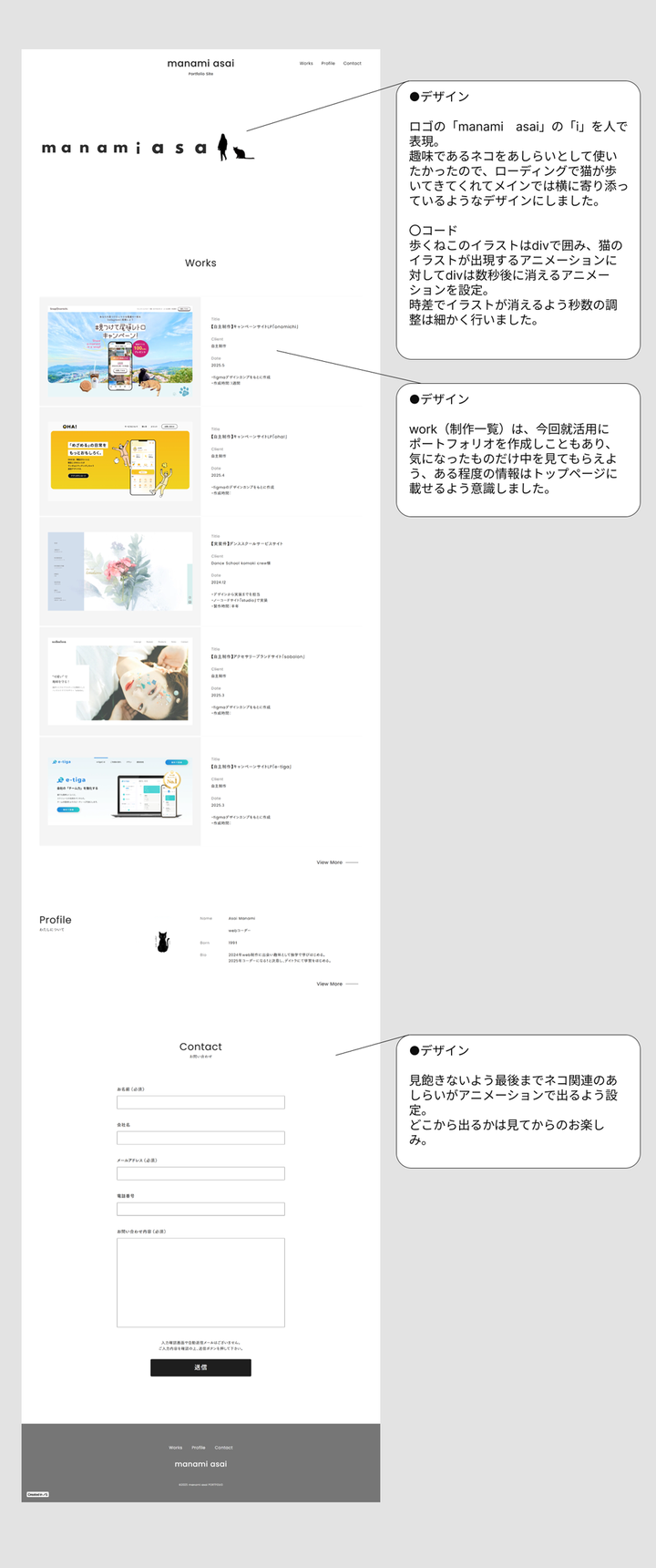 ■プロダクト概要 転職活動用にポートフォリオサイトを作成しました。 ■工夫した点 ・作品を見てもらえるようなるべくシンプルに仕上げました。 ・レスポンシブ対応 ■言語・ツール Studio