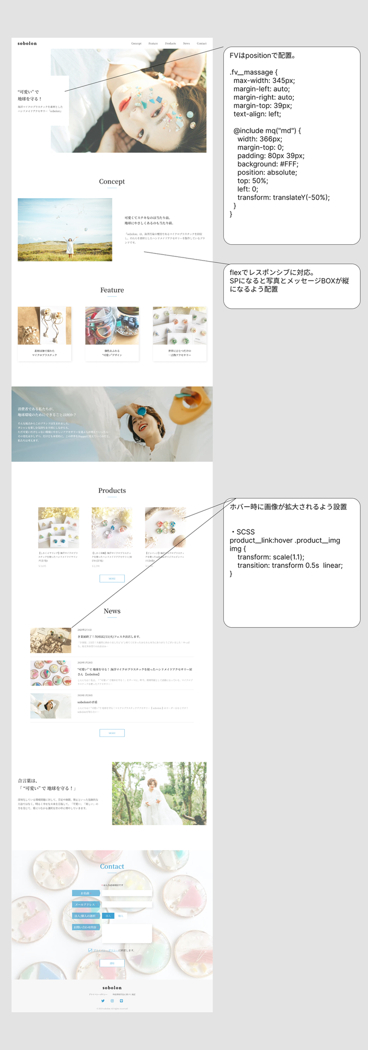 【自主制作】アクセサリーブランドサイト「sobolon」