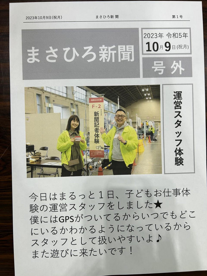 こどもお仕事体験運営での一コマ。 新聞記者になりすました子供に撮影してもらった宝物。 GPSのクダりが悪い大人の入れ知恵👿