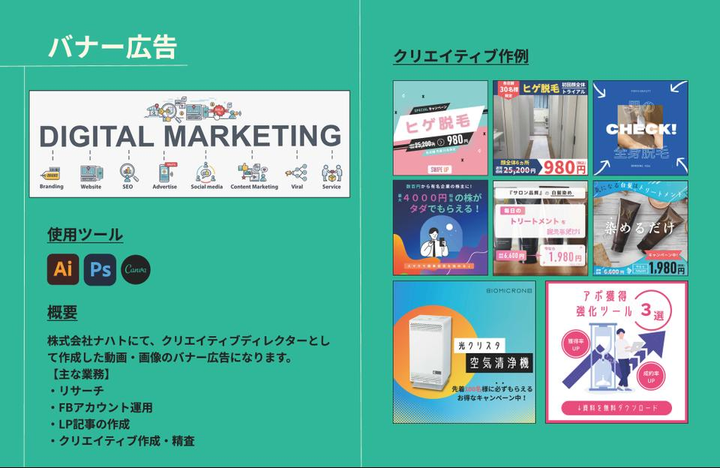 現在、メディア関係、動画・映像制作に関わりたいと考えています。元々エンジニアを目指していて、プログラミング経験が半年ほどで、ウェブサイトや、PHPで簡単なログイン機能や、JavaScriptでウェブ上のタイピングゲームを作った程度です。メディア運用(記事メディア/SEO)の実務での経験は1年ほどですが、WebメディアでライターやSEOなどに携わった後、AD広告の部署でクリエイティブ(動画・静止画)や記事の作成・運用をしていまし