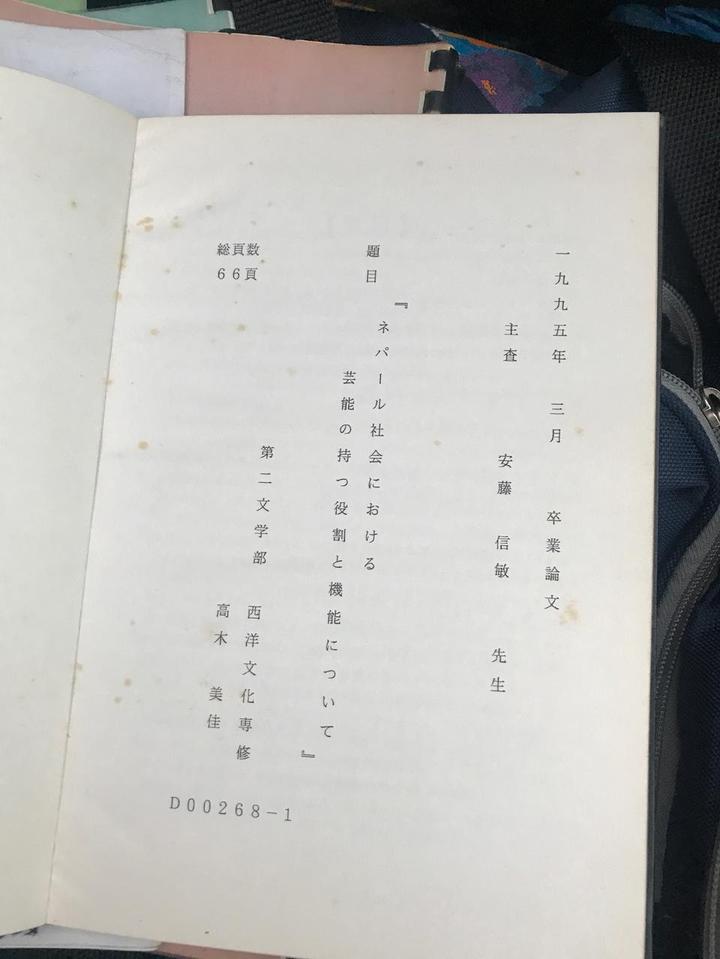 卒論のタイトルは「ネパール社会における芸能のもつ役割と機能について」 ネパールの民族音楽について書きました。
