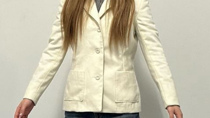 ジャケットは2年生の後期の授業で制作したものです。白ベースにし清潔感のあるジャケットを作りました。初めてのジャケットなため形は基本の形で作りました。工程が多かったので時間の使い方を工夫しながら空き時間などでも制作を進め完成させました。下2枚は3年生でのファッションショー衣装制作になります。