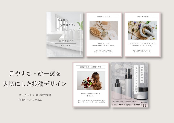 現在はフリーランスとしてデザイン制作をすることが多いのですが、単に制作物を作るだけでなく、クライアント様の事業をより近くで、多角的に支えるパートナーでありたいと考えています。 自身のSNSで集客を実践してきた経験を活かし、SNS運用やオンライン秘書として「ブランドのファンを増やすこと」と「日々の業務を円滑に整えること」の両立を目指します。
