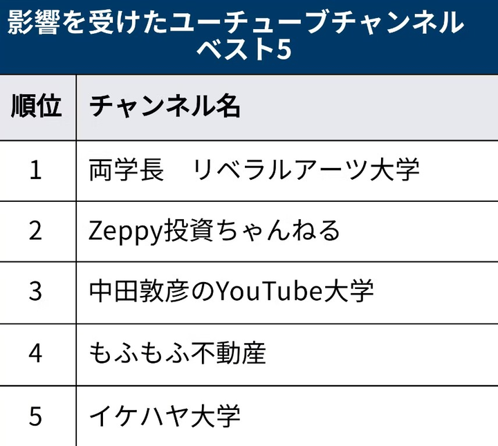 日経の影響を受けたYouTuberランキングに4位に選出