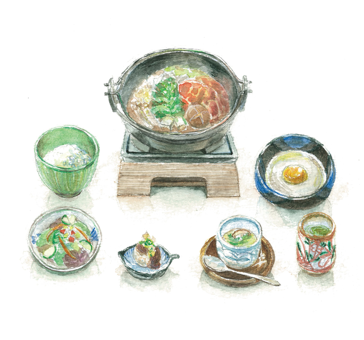 レストランたからのメニュー、外観の水彩画制作