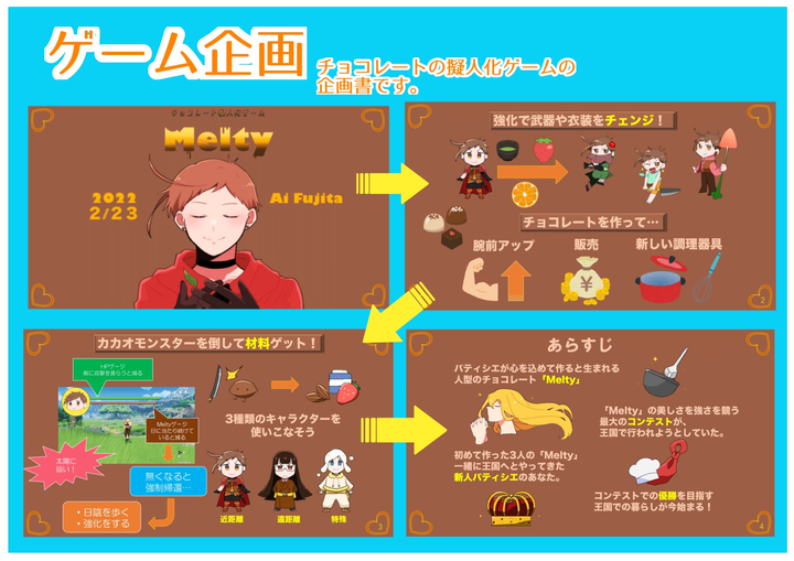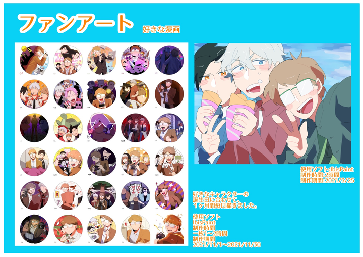 大阪芸術大学のキャラクター造形学科アニメーションコース、2023年卒業予定 授業でアニメーションを制作、グループ制作を学びました。 趣味で漫画を描いており、これまで本を5冊出し、100ページを超える本の制作も行いました。