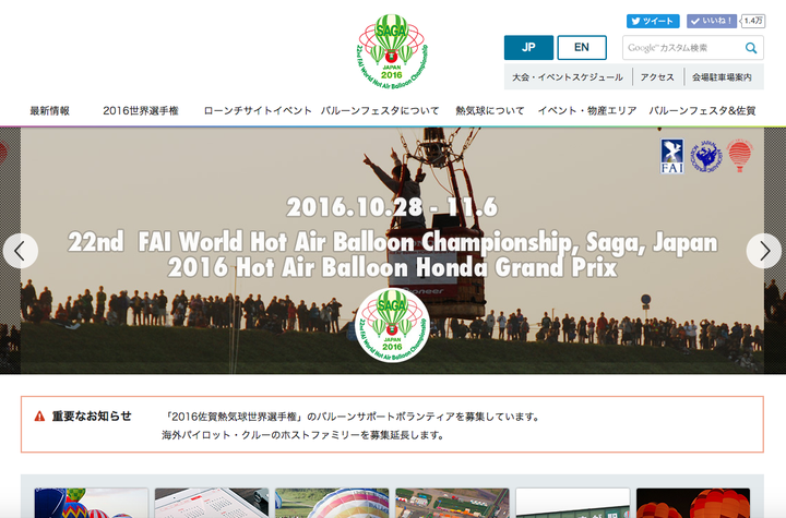 アジア最大級のスカイスポーツイベント「佐賀インターナショナルバルーンフェスタ」公式サイト(企画・運営) スムーズな来場促進と熱気球への参加促進を目指した情報発信している。 公式サイトは3代目(2006年〜・2010年〜・2015年〜)
