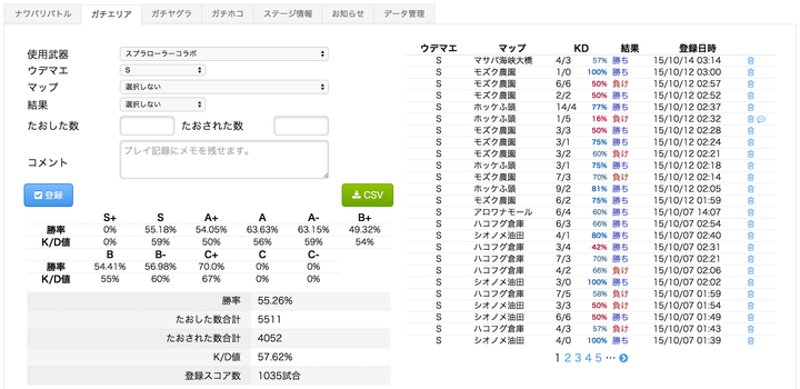 スプラトゥーンの戦績やプレイ結果を記録したり閲覧できる非公式サービスです。 個人で記録をつけて楽しむためのサービスです。