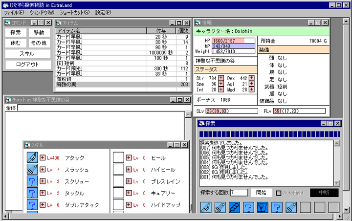 今時のソシャゲっぽい雰囲気のオンラインゲーム。3バージョンある。バージョン1と2は非同期型、バージョン3はソケット通信で同期型。初代バージョンのみリリース済み、現在は非公開。正確な作成時期は不明。初代バージョンではアイテム課金させてくれと言われたこともあった。(させてあげればよかった。)