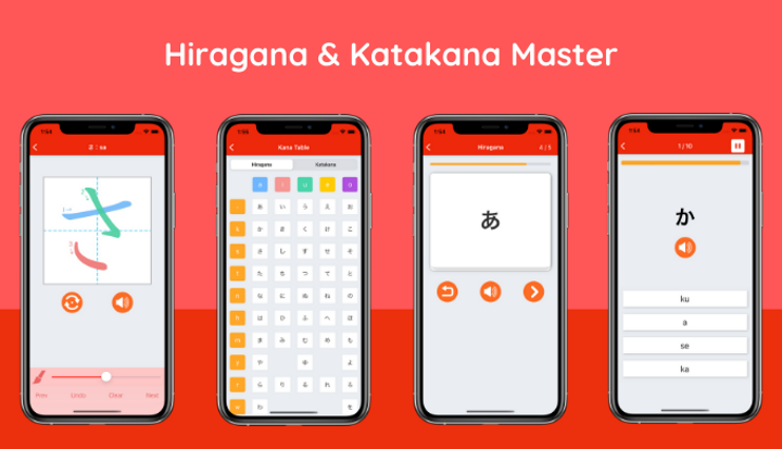 ひらがな・カタカナの読み書きが練習できるアプリです。