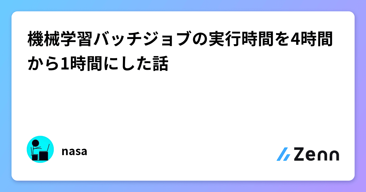 データサイエンティストの生産性改善のためジョブの高速化を行った。 結果として4時間ほどのジョブの実行時間を1時間に短縮できた。