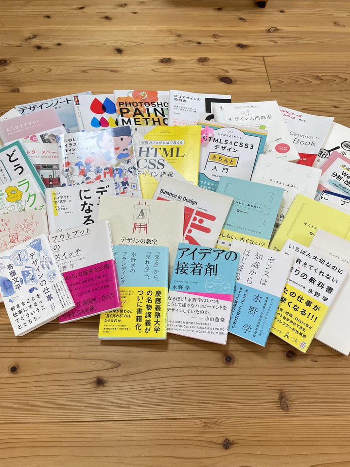 1人暮らしの時から5回以上は引越しをしているので処分して一時期減ったのですが、デザイン本は好きで増えていく一方です。 特に水野学さんの考え方や視点のユーモアな部分が好きで、愛読しています。