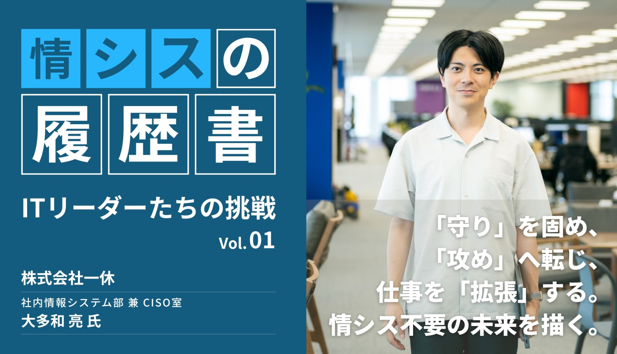 2015年に新卒で入社した大手企業の情報システム部門で社内 SE としてキャリアをスタート。基幹システムの保守運用・開発に携わった後、2018年に株式会社一休(LINEヤフーグループ)に入社。ヘルプデスク業務からコーポレートエンジニアとしての SaaS・クラウドサービスを中心としたシステム企画・開発や、本社オフィスの移転といった全社的なプロジェクト推進まで幅広く担当。2022年からは CISO室を兼任し、情報セキュリティ、データプライバシー領域も管轄。
