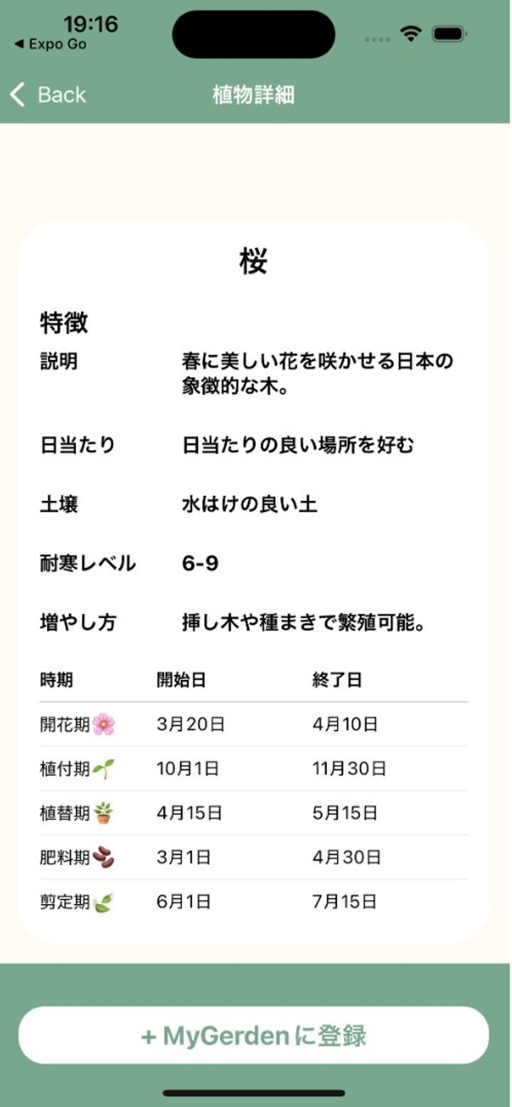 冬にサークル内で四人のグループを組んでガーデニングに関するアプリを作成しました。 初めての開発だったので、植物とユーザーを紐づける登録機能と、ユーザーが管理する植物の表示機能を追加しました。