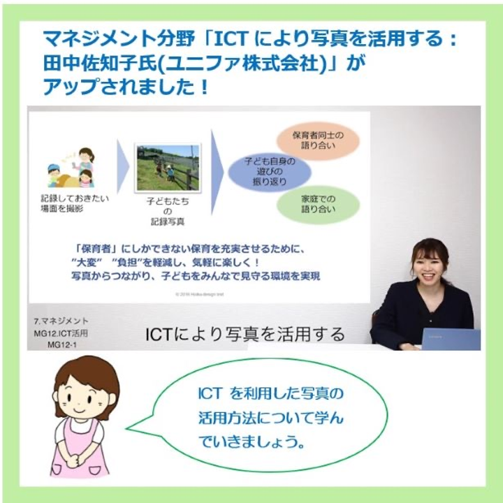 保育のデザイン研究所 【on-line研修】マネジメント分野「ICTにより写真を活用する:田中佐知子氏(ユニファ株式会社)」