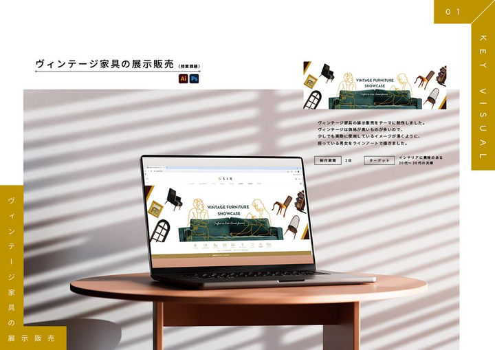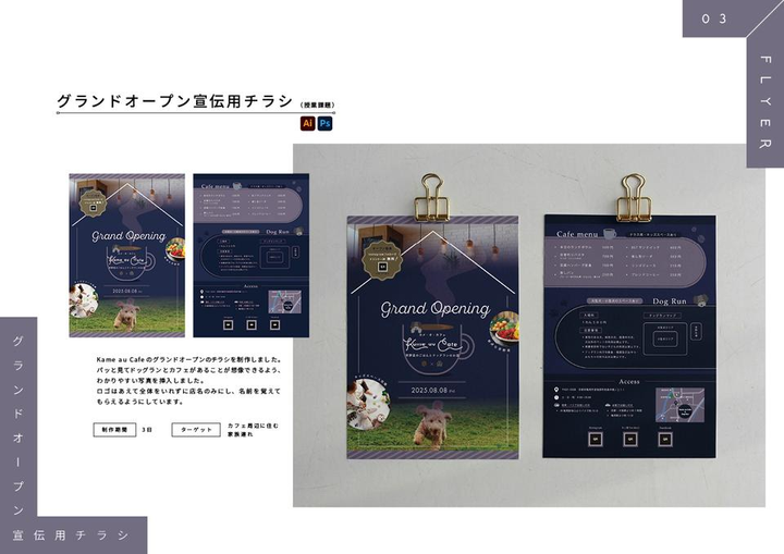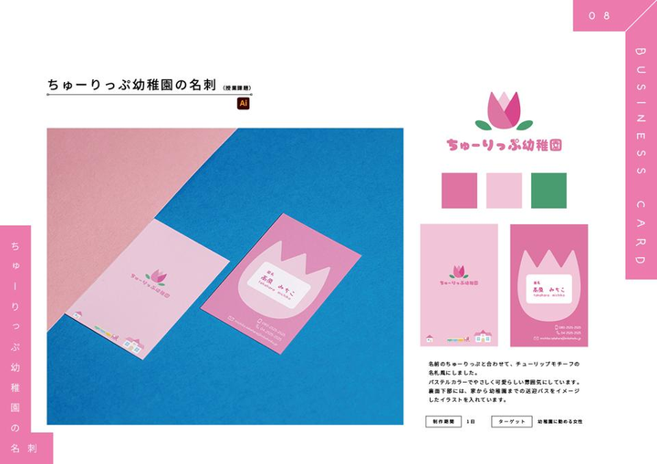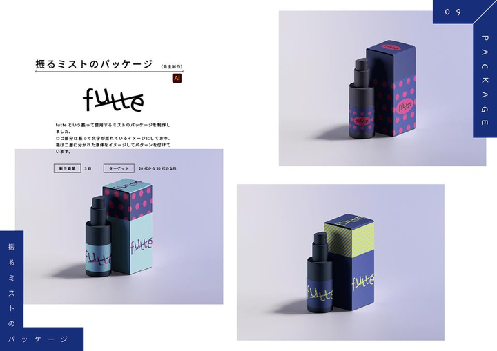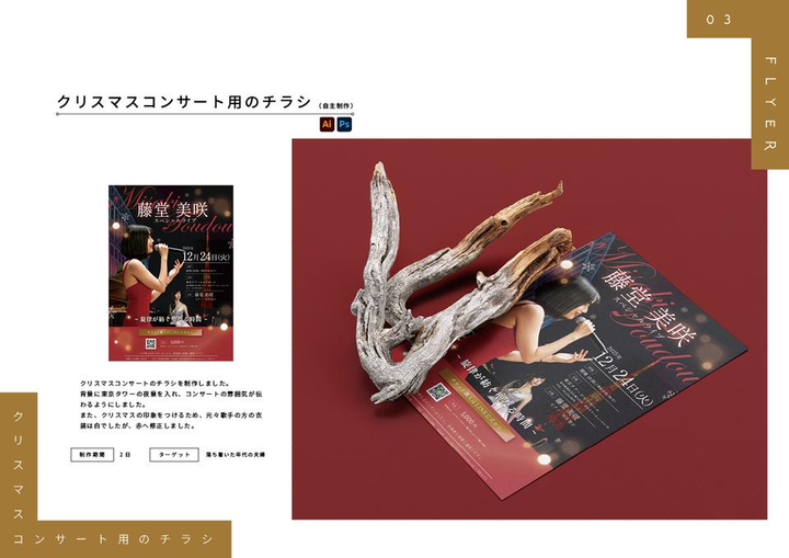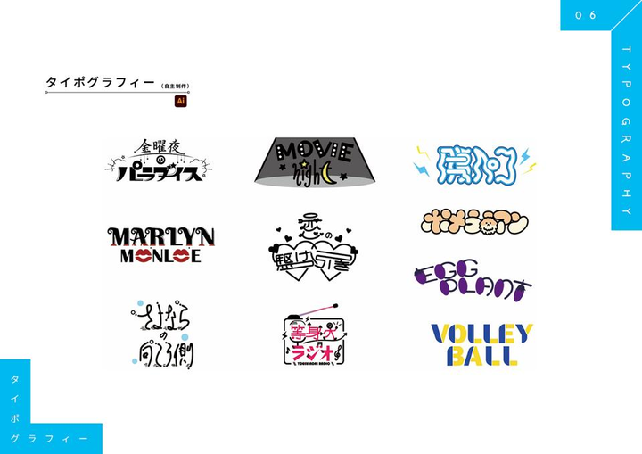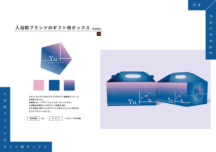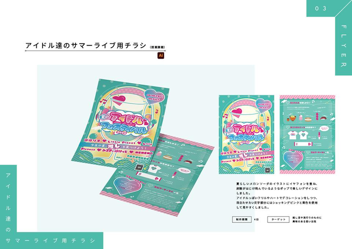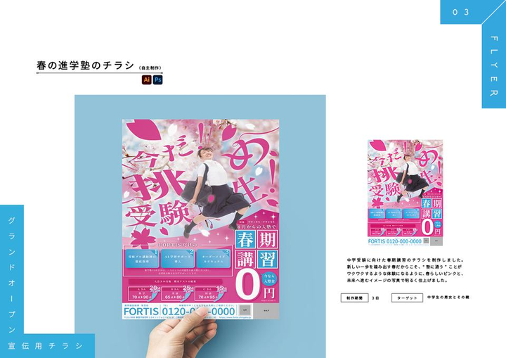 職業訓練校にてグラフィックデザインを学び、課題制作・自主制作をポートフォリオにまとめました。