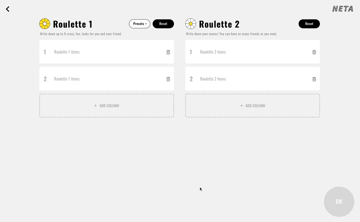 オンライン上でも、リアルより気軽なコミュニケーションを実現してほしいという想いから参加者全員が会話を楽しむことのできる「トークテーマ作成ツールNETA」を制作しました。本プロジェクトでは、情報設計、UIデザインを担当しました。