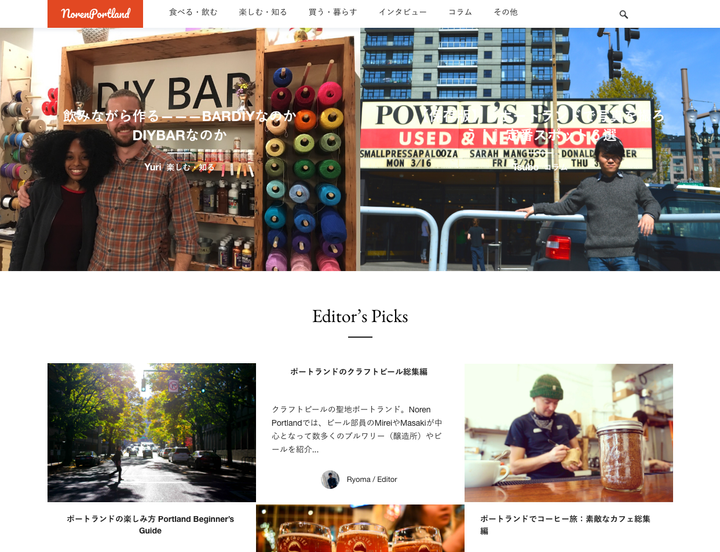 ポートランドの魅力を発信するWebマガジン、Noren Portlandの立ち上げ、運営、デザイン、プログラミング実装を担当しました。 現在でもポートランド現地のメンバーにより運営されていて、Webマガジン以外にも、ポートランド好きが集まる「Noren Portlandコミュニティ」「Noren Portland in Tokyo」なども行なっています。