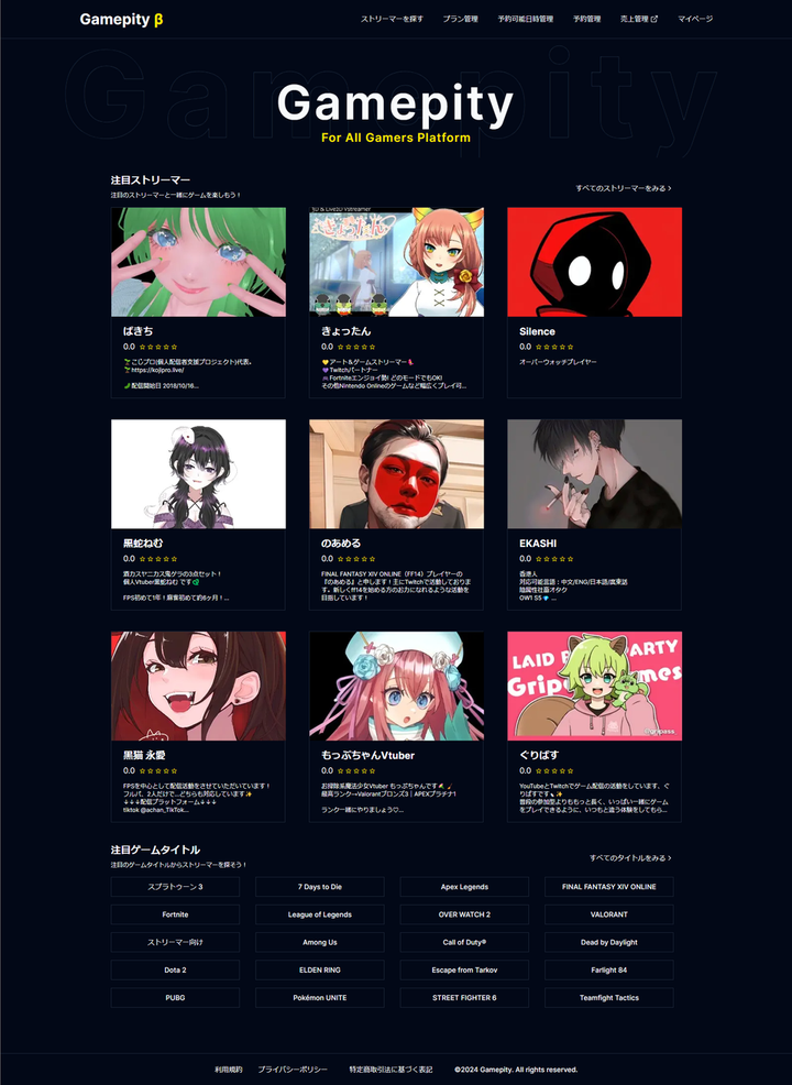 ゲーマーとストリーマーをつなぐサービス『Gamepity』の開発