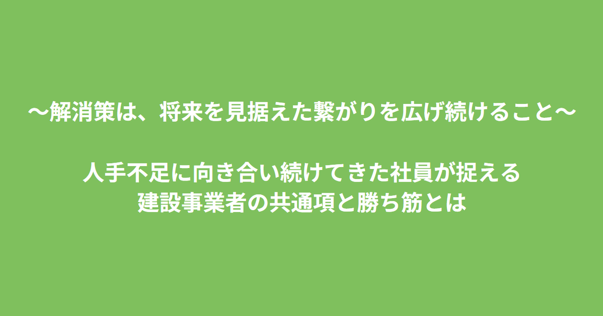 人手不足に向き合い続けてきた社員が捉える建設事業者の共通項と勝ち筋とは