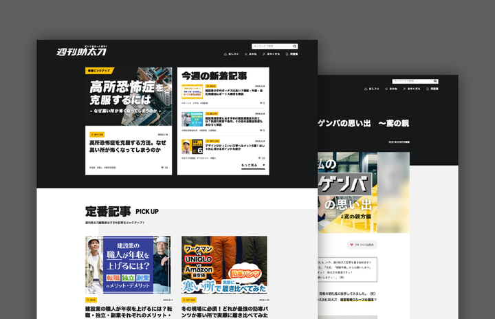 オウンドメディア週刊助太刀のwebデザイン、構造、記事サムネイル、取材同行、撮影、一部記事監修を行いました。