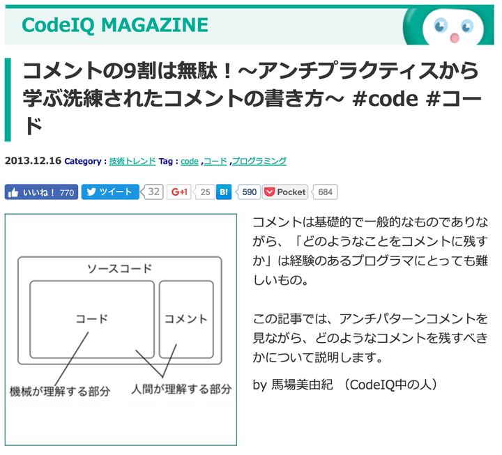 CodeIQブログへの寄稿『コメントの9割は無駄!~アンチプラクティスから学ぶ洗練されたコメントの書き方~』